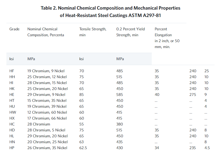 b For low ferrite or non-magnetic castings of this grade, the following values shall apply: tensile strength, min, 65 ksi (450 MPa); yield point, min, 28 ksi (195 MPa).