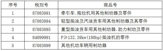 表4:5个税则号汽车零部件