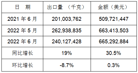 表6:2022年6月同比、环比出口情况
